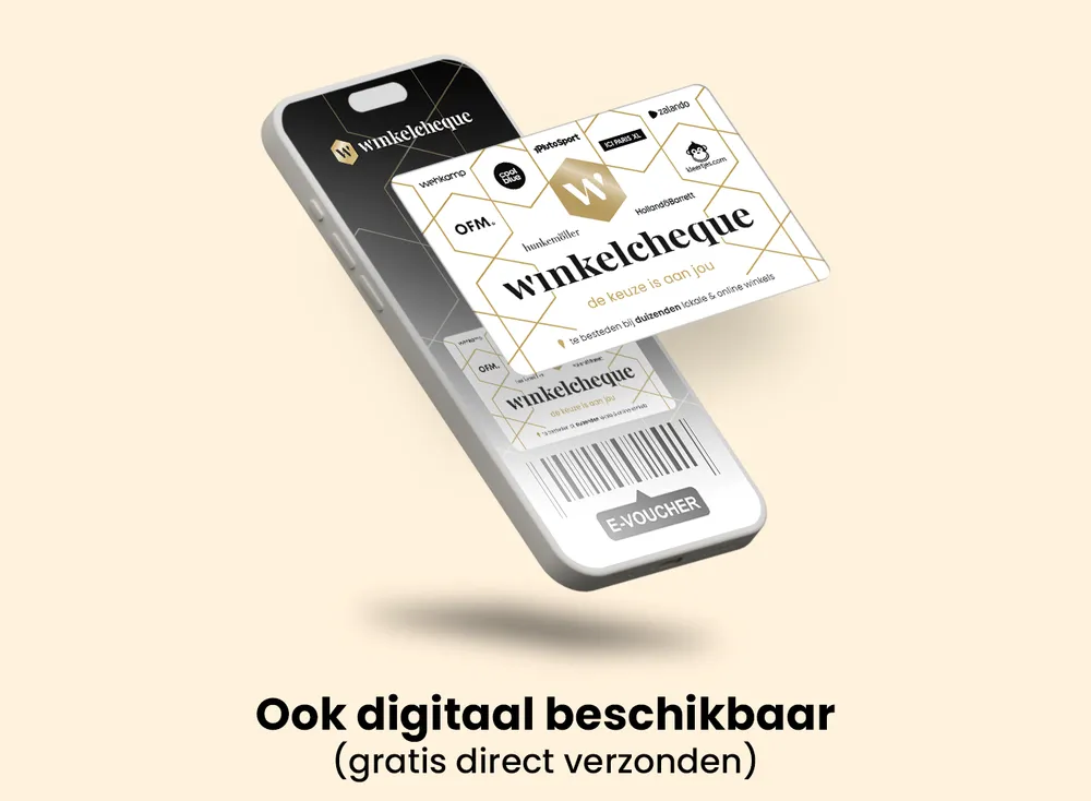 Met de Winkelcheque geef je een cadeaukaart die breed inzetbaar is en eenvoudig kan worden aangeschaft. De Winkelcheque is beschikbaar in verschillende waardes en geschikt voor uiteenlopende gelegenheden, zoals verjaardagen, feestdagen of zakelijke momenten. Om het cadeau passend te maken bij het moment van geven, is er keuze uit veel verschillende verpakkingen en cadeau pakketten. De Winkelcheque is verkrijgbaar als fysieke kaart in een bijpassende cadeauverpakking of als digitale e-voucher voor snelle levering.