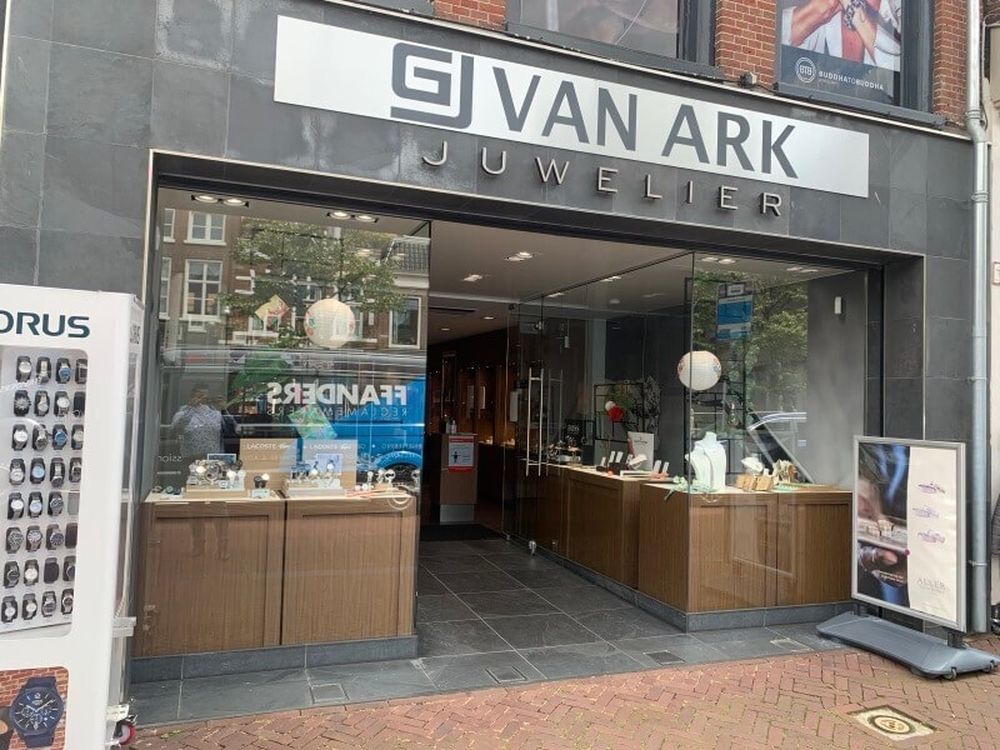 Van Ark Juwelier heeft een fysieke winkel in Leeuwarden, centraal gelegen en goed bereikbaar met zowel het openbaar vervoer als de auto. In de directe omgeving zijn parkeermogelijkheden aanwezig. In de winkel kun je diverse sieraden en horloges bekijken, passen en vergelijken met deskundig advies van de medewerkers.